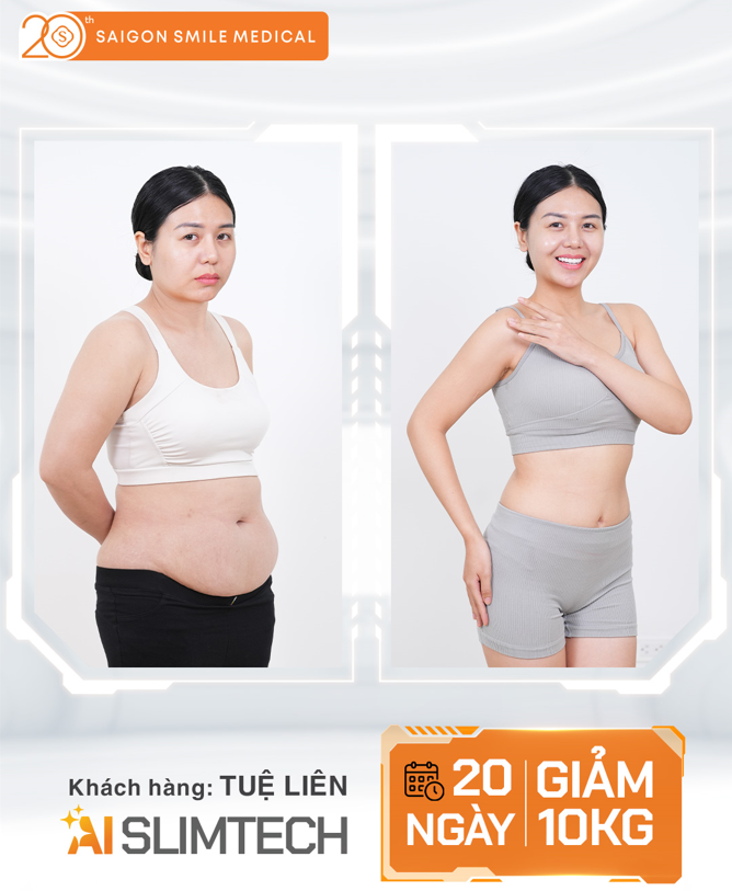Nhờ lựa chọn AI Slimtech – công nghệ giảm béo ứng dụng trí tuệ nhân tạo tại Saigon Smile Medical, chỉ sau 20 ngày, chị Tuệ Liên đã đạt được kết quả ngoài mong đợi: