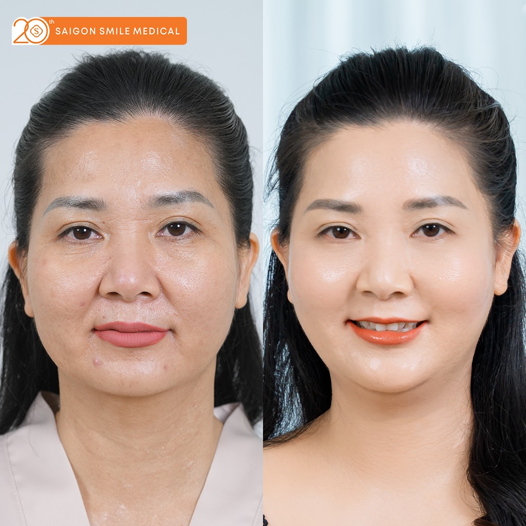 • Làn da săn mịn dần theo thời gian, nếp nhăn vùng trán, rãnh mũi má, khóe mắt được làm mờ